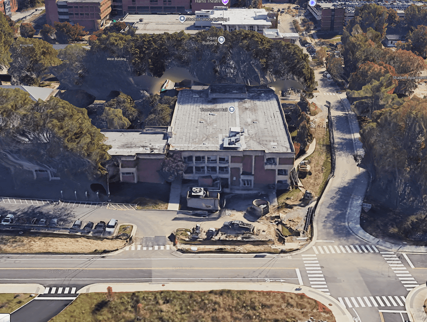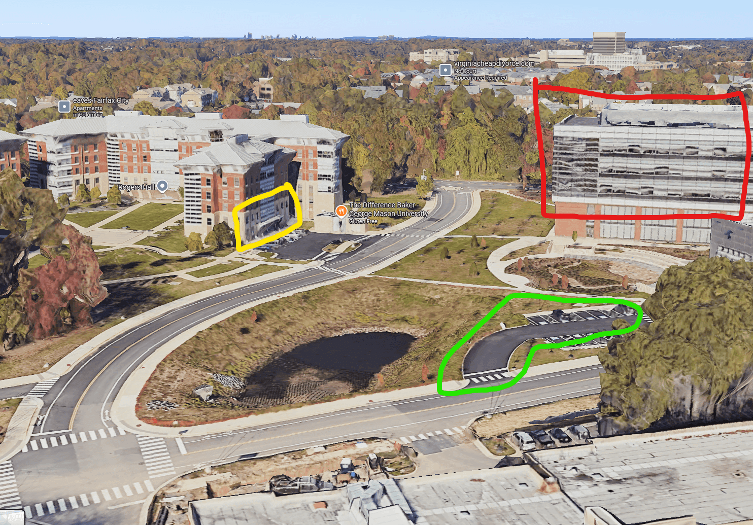 Wait! I drove by here while heading to the in-person launch event! We can see that there’s some road in between some buildings. This is probably on campus like the first one. Let’s do some reconnaissance.