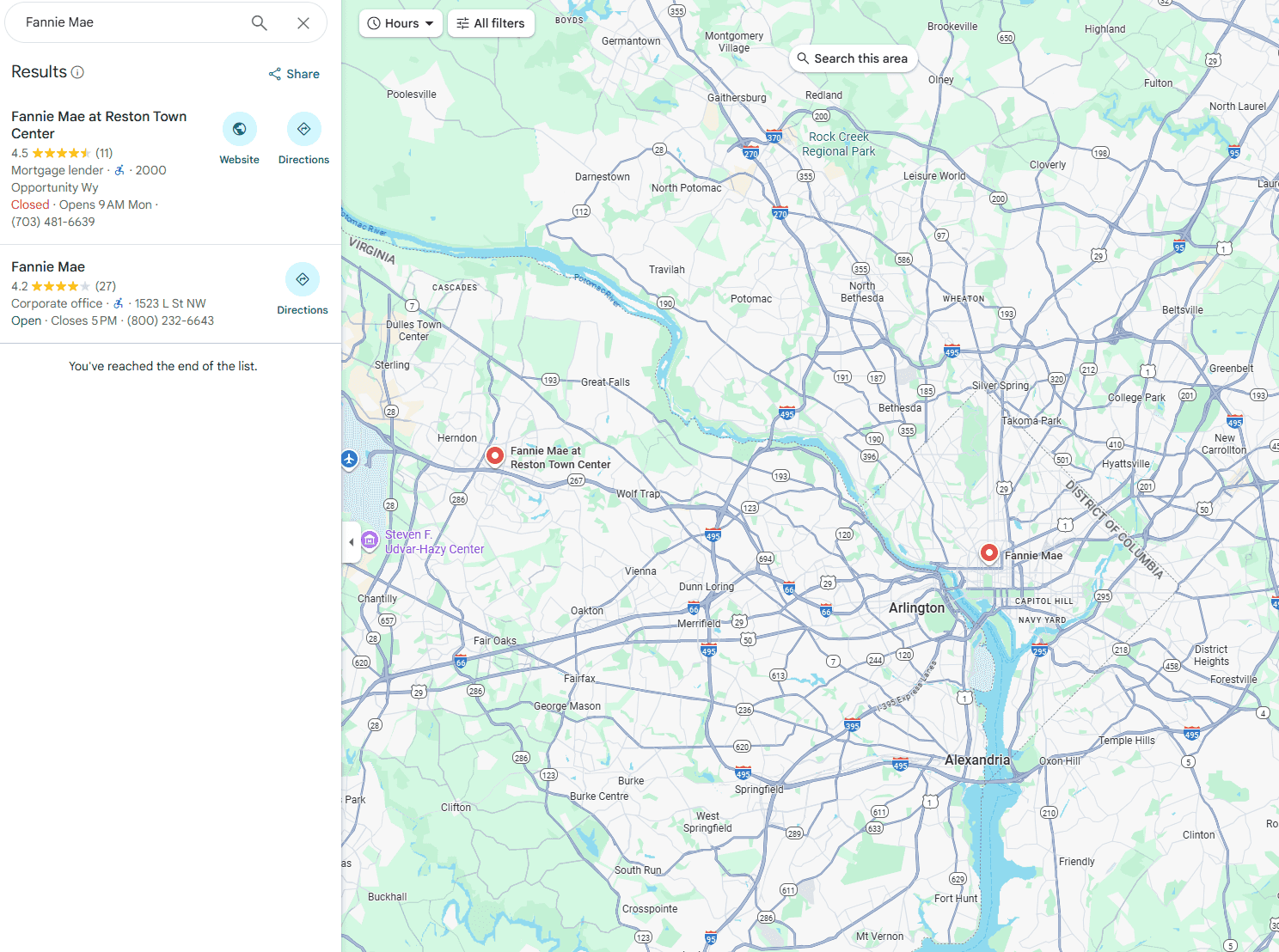 There are only two locations in the Washington D.C. area, but only one of them is in Northern Virginia. It is in a town called “Reston”. Sounds like the town for the second part! Let’s double check: