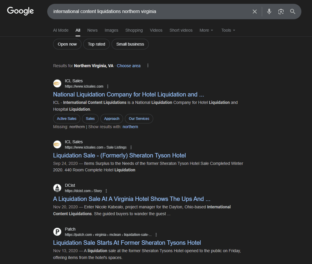 Hmm, this one is a bit harder. It’s some abandoned building again. The first image shows a large hallway with multiple columns. The second image shows a piece of paper that says “STOP! This area not open for liquidation”, a phone number “470-277-3666”, and at the bottom text that reads “ICL/International Content Liquidations, INC.” My first instinct was to search up the company, which gave me these results:
