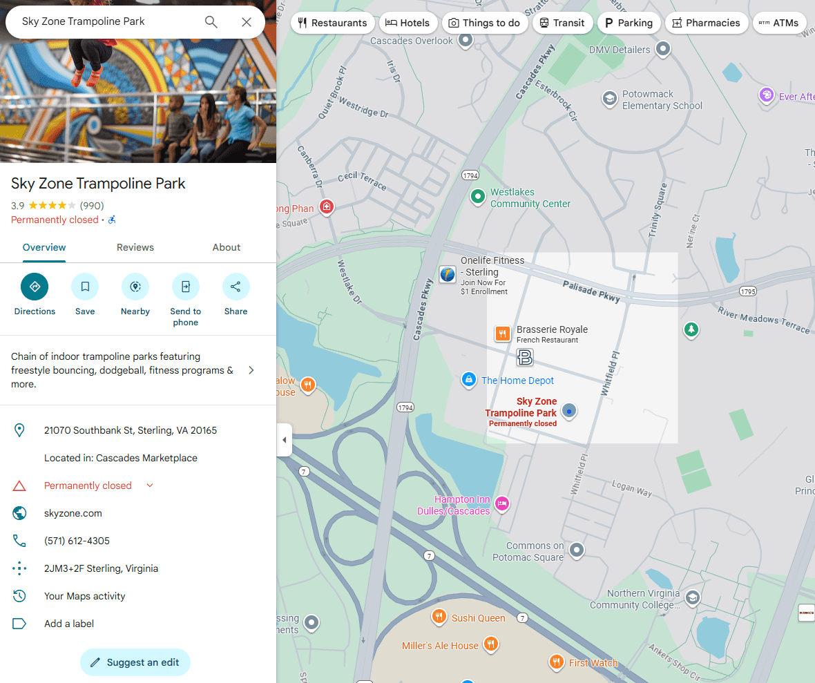 So, I searched up “abandoned skyzone NOVA”. I immediately got these results: